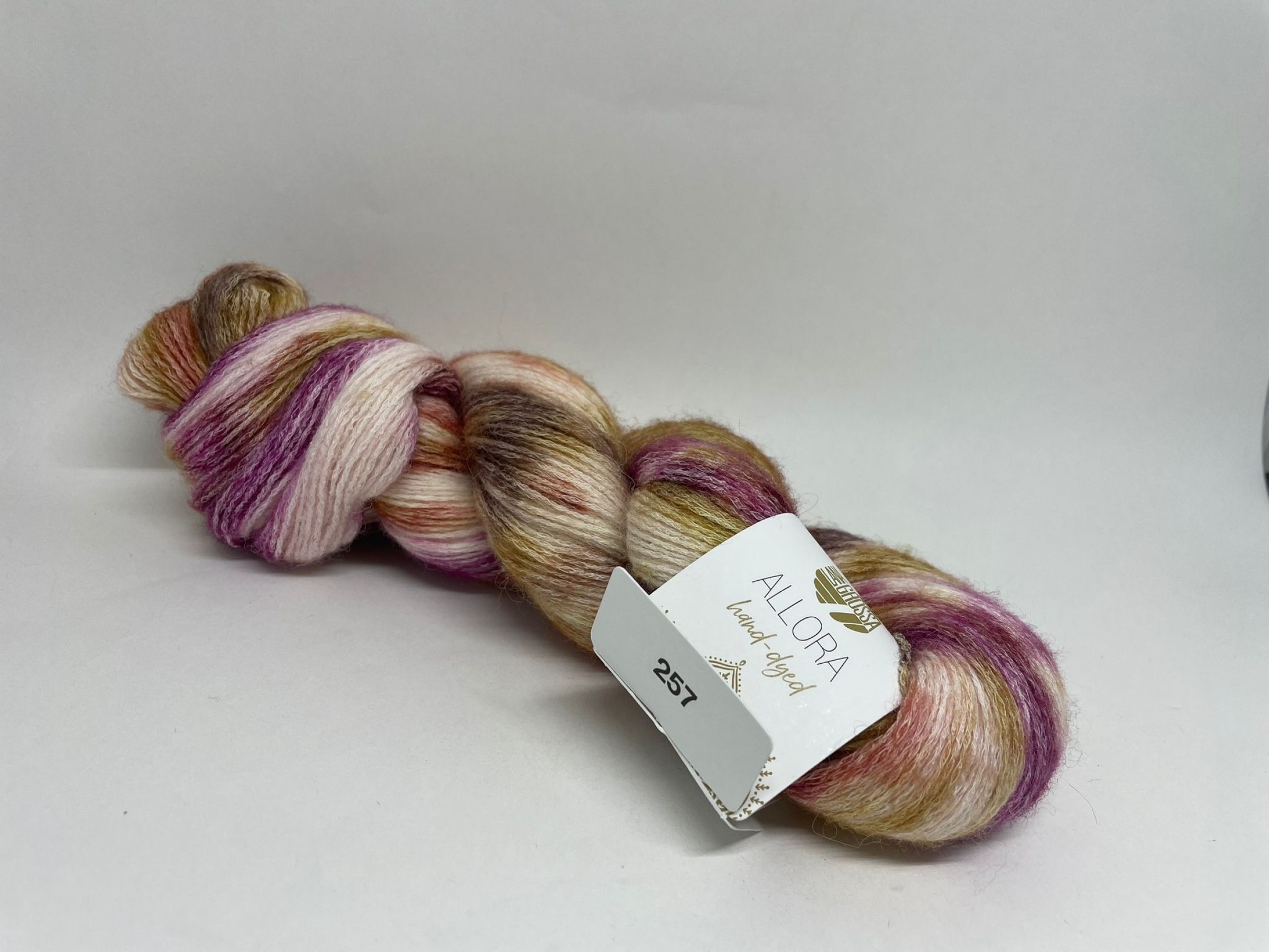 Lana Grossa Allora hand-dyed Fb 257 wollweiss-braun-weinrot